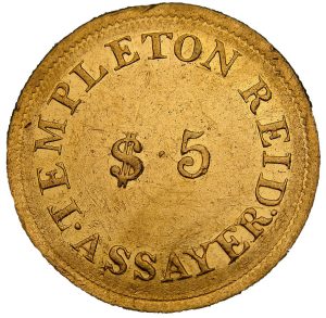 Today, the legendary Templeton Reid $5 gold coin is one of the great early American rarities among private and territorial gold issues. Only six Templeton Reid $5 gold coins are known to survive and two of those are safely ensconced in the National Numismatic Collection at the Smithsonian Institution.