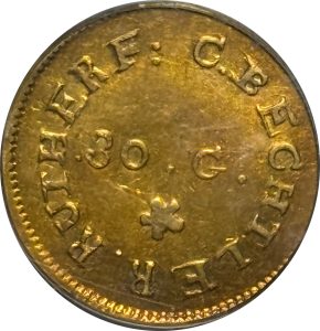 C. Bechtler $1 30G Reeded Edge K-1 (K-1a)         PCGS #10064