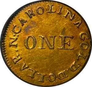 The Piedmont region of North Carolina and Georgia provided most of the nation’s native gold supply until the California gold strikes in 1848. Christopher Bechtler and son August, plus his nephew, Christopher Jr., operated the Bechtler private mint from 1831 to at least 1852. The 30 grain $1 was struck by Christopher Bechtler circa 1831-34 and historically significant as the first gold dollar produced in the United States.