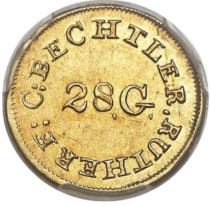 The K-3 variety is recognized by the Normal N in ONE, the colon between C and BECHTLER, and the centered 28.G. in the field. The regular K-3 has a reeded edge and the K-3a has a plain edge.