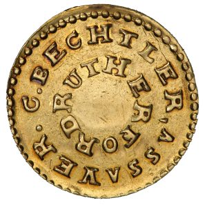 The Bechtler $2.5 K-7 variety features GOLD above the denomination, which is centered in the obverse field above 20.C. The beads around the border are fine, as opposed to coarse, distinguishing it from the K-6 variety. No weight is listed.