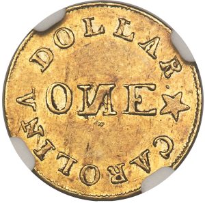 The Bechtler $1 K-4 (1837–1842) is a rare private gold dollar issued by Christopher Bechtler in Rutherfordton, North Carolina, featuring a distinct “reversed N” in the word “ONE” on the reverse.